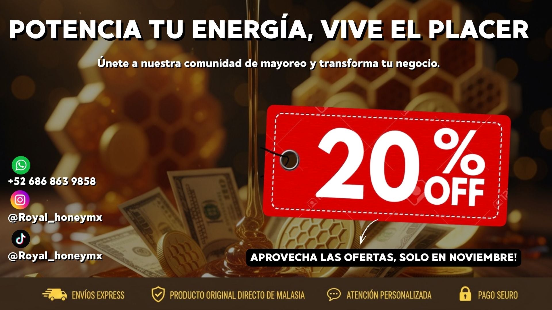 Proveedor:Royal Honey MxPrecio habitual $ 949.00 MXNPrecio habitualPrecio unitario / por$ 1,149.00 MXNPrecio de oferta $ 949.00 MXNOferta